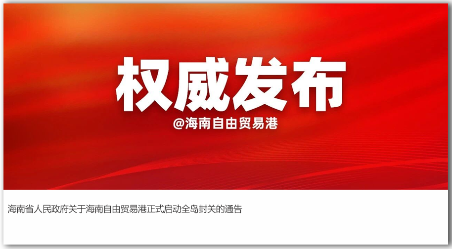 海南自由貿易港正式啟動全島封關