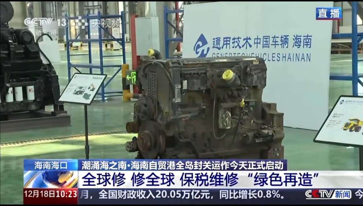 12月18日,中央廣播電視總臺13套新聞直播間欄目《海南自由貿易港封關特別節目》以近5分鐘篇幅專題報道了通用技術集團貿易與工程服務領域的一項創新業務成果——發動機保稅維修業務。這項首次被允許在國內開展的車輛用發動機保稅維修業務,生動展現了自貿港封關后貿易自由化、便利化的全新活力。